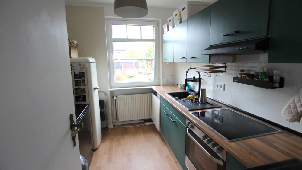 - gepflegte Einbauküche ausgestattet mit Herd, Cerankochfeld, Backofen, Geschirrspüler, Kühlschrank und diversen Ober- und Unterschränken (im Eigentum des derzeitigen Mieters, kann von diesem abgekauft werden!)