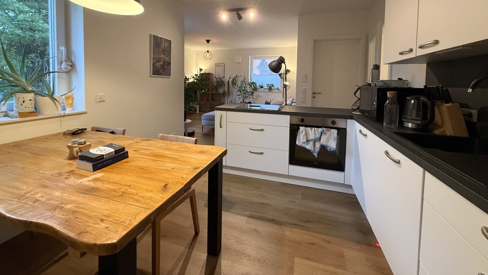 - Wohnraumbelüftung in Wohn-/Esszimmer mit Kochbereich und Schlafzimmer per Schalter bedienbar