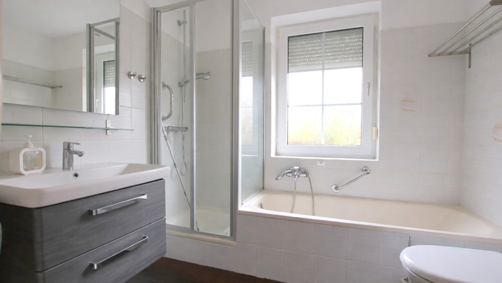 Werden Sie Mieter dieser attraktiven, hellen Erdgeschosswohnung! Die Wohnung liegt in einem gepflegten, ruhigen Zweifamilienhaus und teilt sich auf in ein Wohn- und Esszimmer mit Zugang zur Terrasse, Schlafzimmer, Gästezimmer/Büro, Küche, Bad, Hauswirtschaftsraum und Diele. Weiterhin gehören ein Pkw-Stellplatz und ein gemeinschaftlicher Fahrradabstellraum zum Mietobjekt.