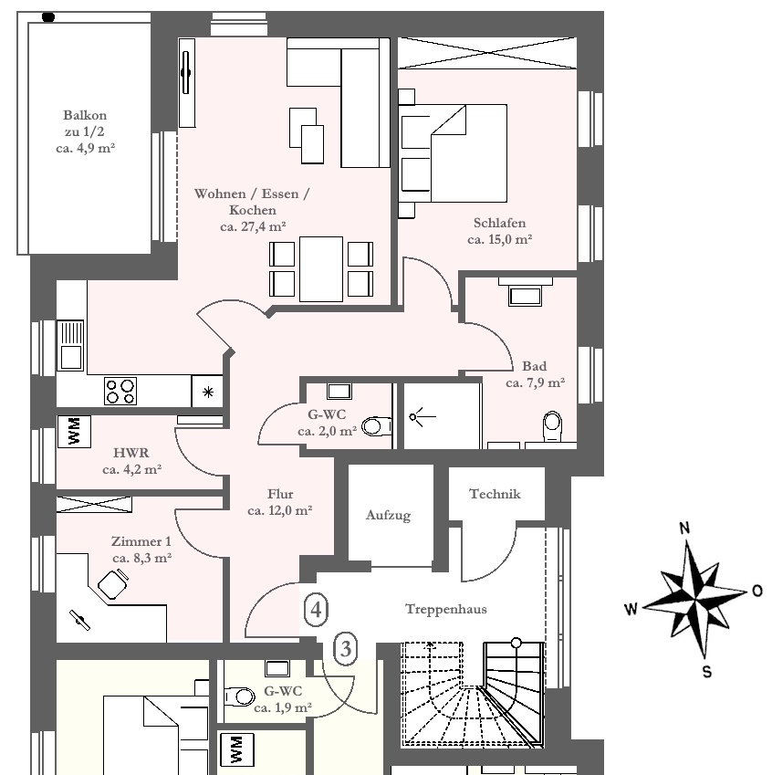 In beliebter Zentrumslage von Bad Zwischenahn entstehen fünf exklusive Eigentumswohnungen, die modernen Wohnkomfort mit einer durchdachten Architektur verbinden. Das Gebäude umfasst zwei großzügige 3-Zimmer-Wohnungen im Erdgeschoss, zwei weitere 3-Zimmer-Wohnungen im Obergeschoss sowie eine attraktive 4-Zimmer-Dachgeschosswohnung mit besonderem Charme. Alle Wohnungen überzeugen durch eine gelungene Raumaufteilung mit hellen, freundlichen Wohnbereichen.