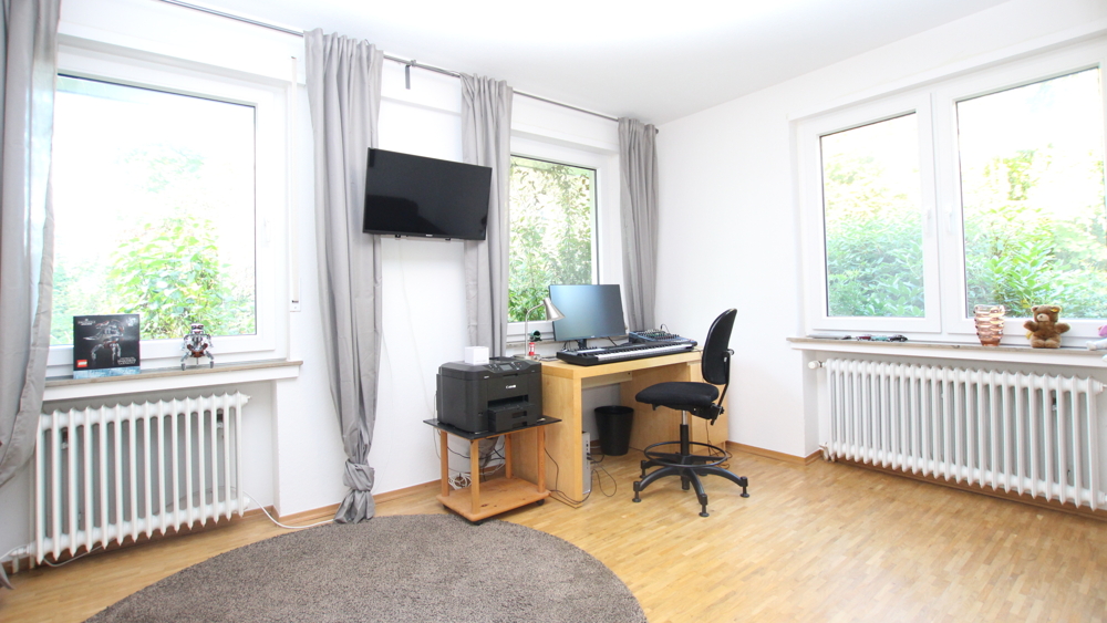 - Fensterelemente überwiegend mit Rollläden ausgestattet; großes Schiebetürelement im Wohnzimmer zur Südterrasse