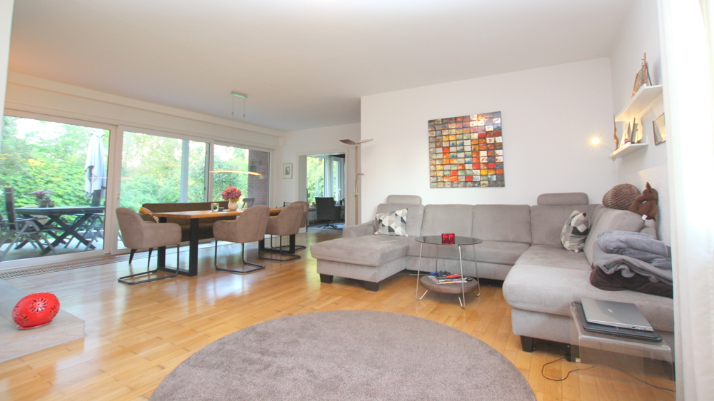 Beschreibung Dieses an einer absolut ruhigen, asphaltierten Nebenstraße gelegene Landhausanwesen umfasst ein gepflegtes und modernes Wohnhaus mit einer integrierten Garage im Souterrain. Das Wohnhaus verfügt über ein Wohn‐ und Esszimmer mit teilüberdachter Südterrasse einschl. zwei Kaminen, Wohnküche, Schlafzimmer, zwei Kinderzimmer, En-Suite‐Bad, Empfangsdiele mit Garderobe und Gäste‐WC, HWR sowie mehrere Nebenräume im Souterrain. Das nicht einsehbare Parkgrundstück ist mit Strauchgewächsen sowie von altgewachsenen Bäumen (Eichen, Tannen, Birken usw.) und straßenseitig mit altgewachsenen Rhododendren begrünt. Eine benachbarte Gehölzfläche u.a. mit Eichen, Ahorn, altgewachsenen Rhododendren sowie einem integrierten Teich ist im Angebot enthalten.