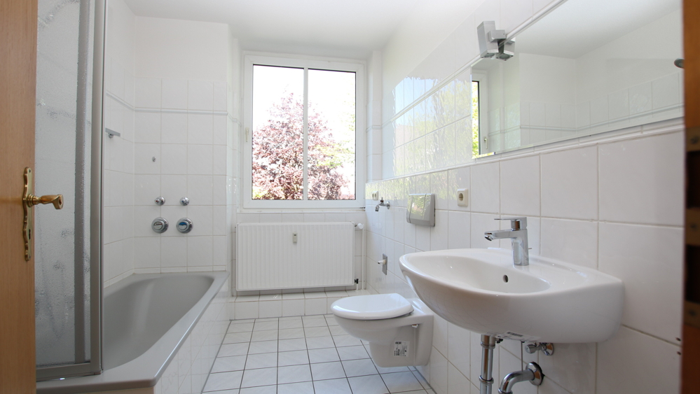 Beschreibung Die Wohnung befindet sich im I. Obergeschoss eines gepflegten 9-Familienhauses und verfügt über Wohnzimmer mit Balkonzugang, Schlafzimmer, Gästezimmer/Büro, Küche, Wannenbad sowie Flurbereich mit Einbauschrank. Alle Wohnräume sind mit Laminatboden ausgestattet. Zur Mietwohnung gehören außerdem ein Kellerraum und ein Pkw-Stellplatz.